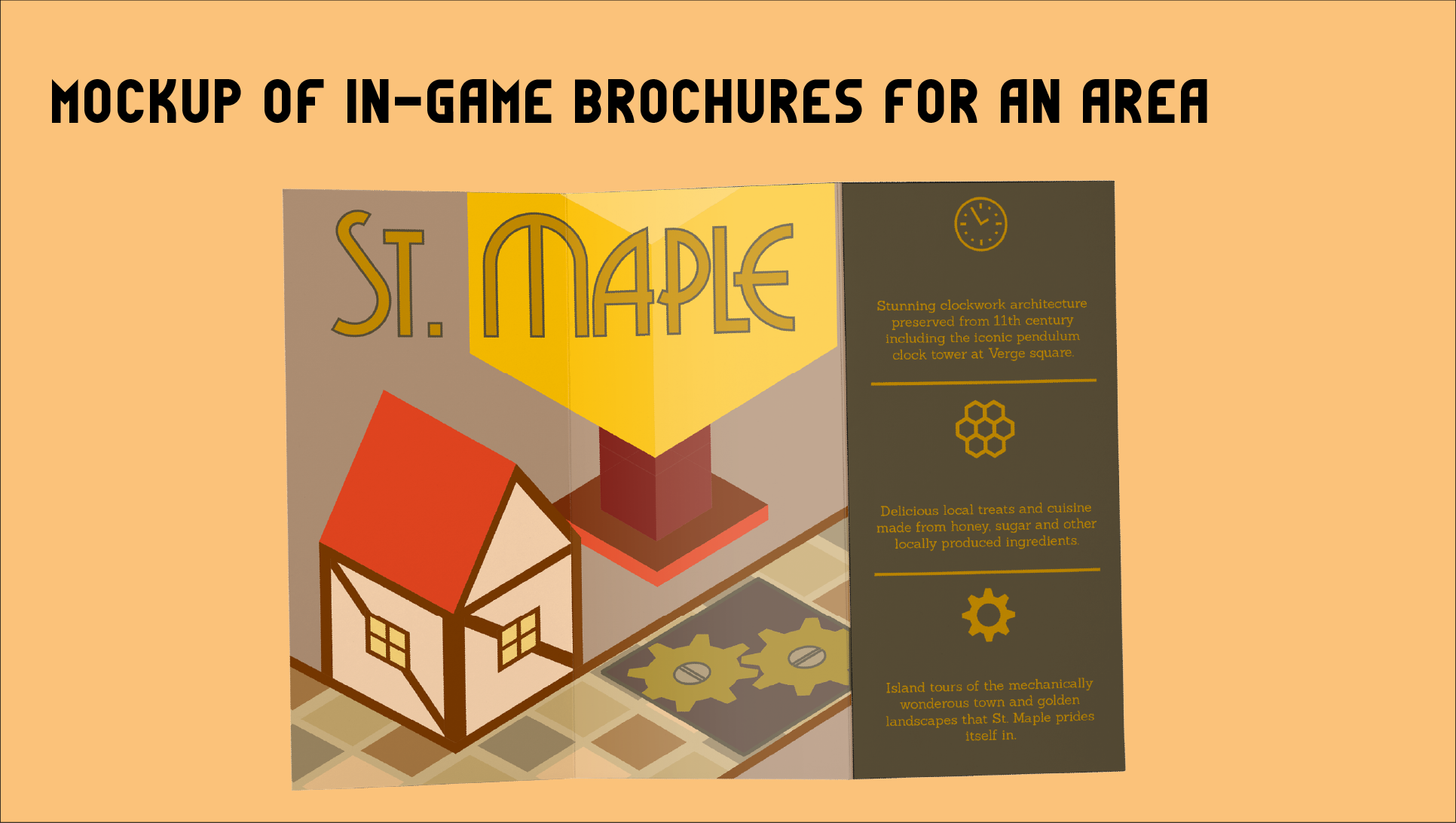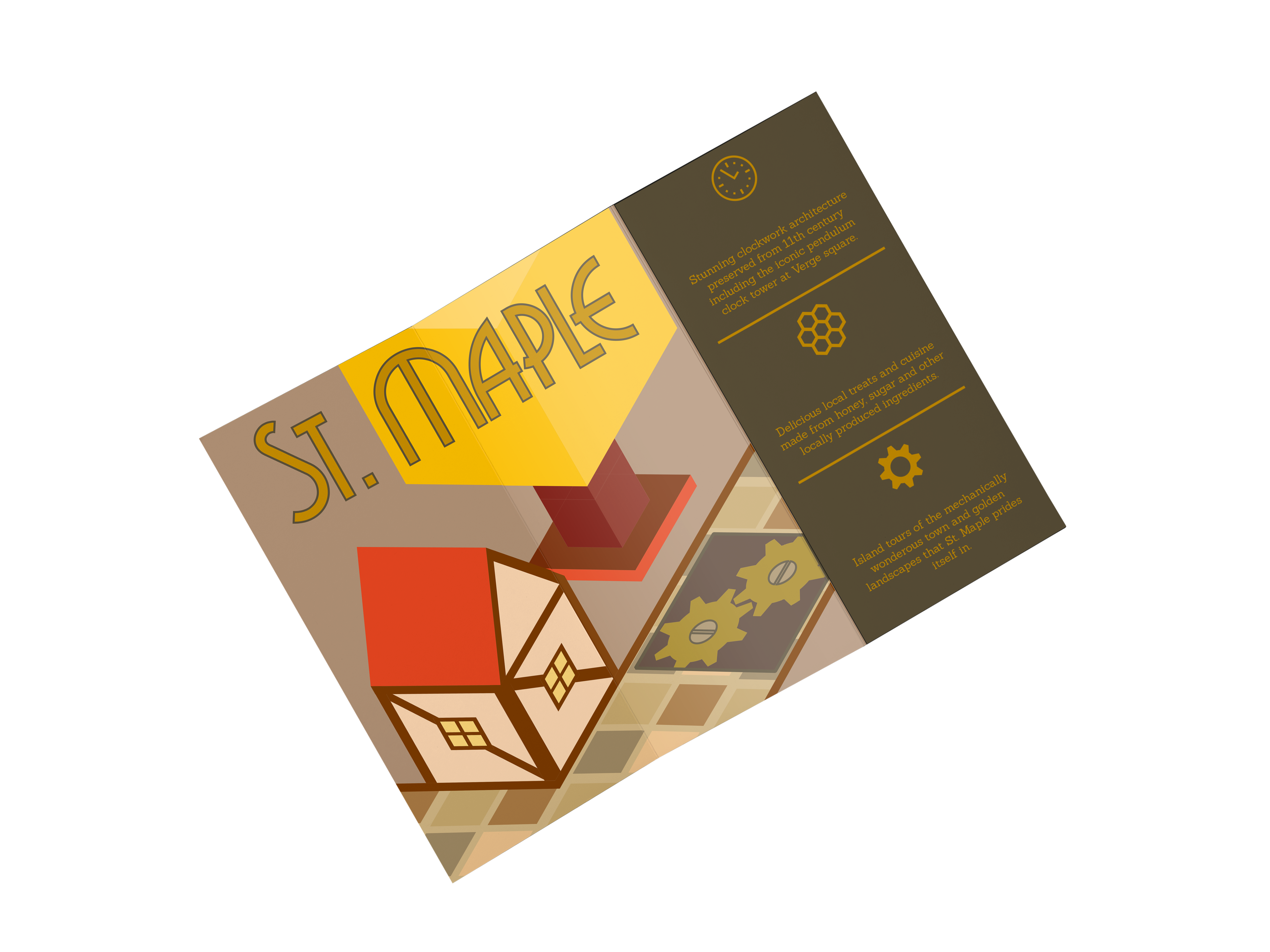 The theming of the game was around traveling and hotel resorts! Each location in the game would have brochures advertising the mechanics of each world.