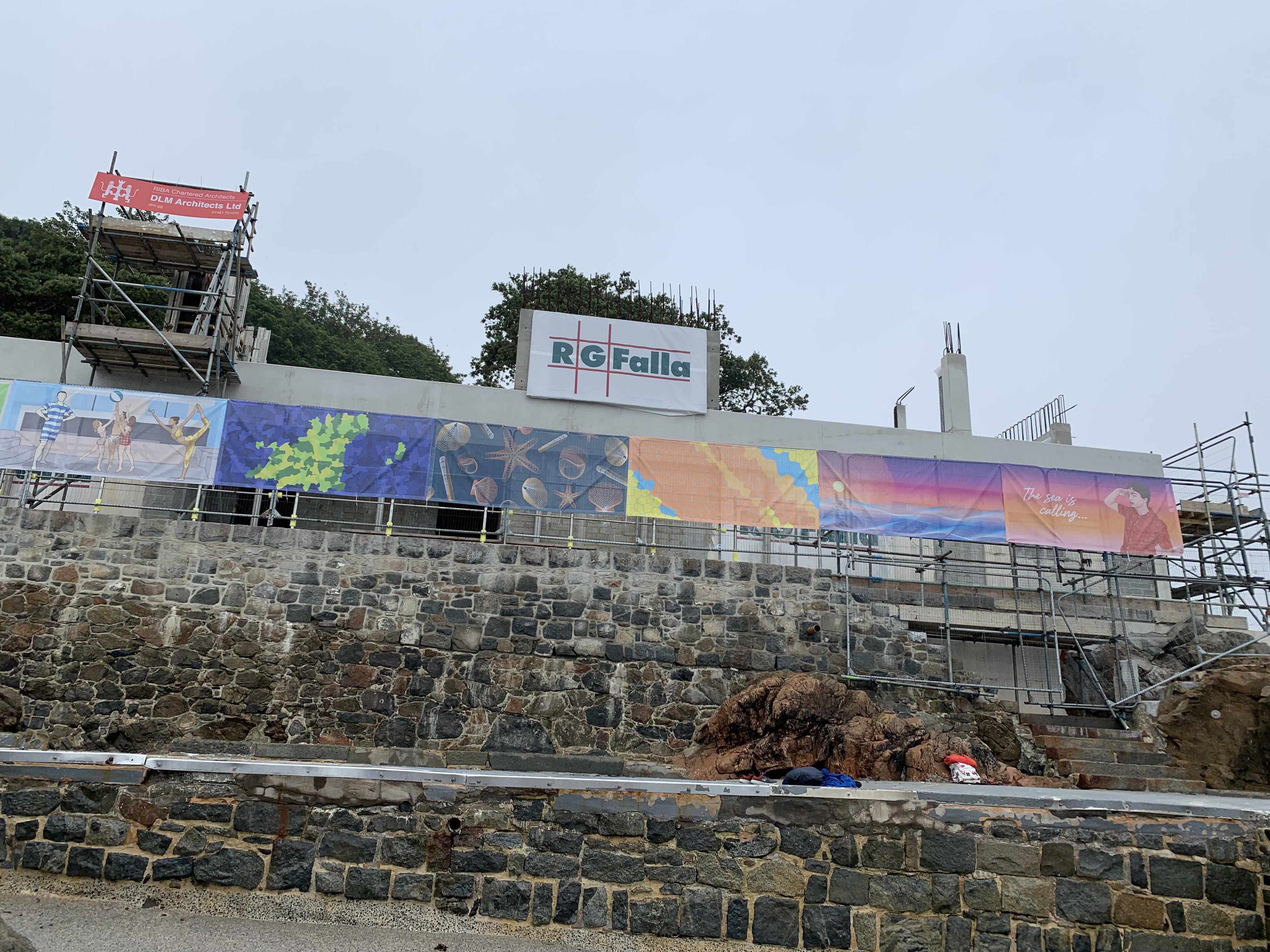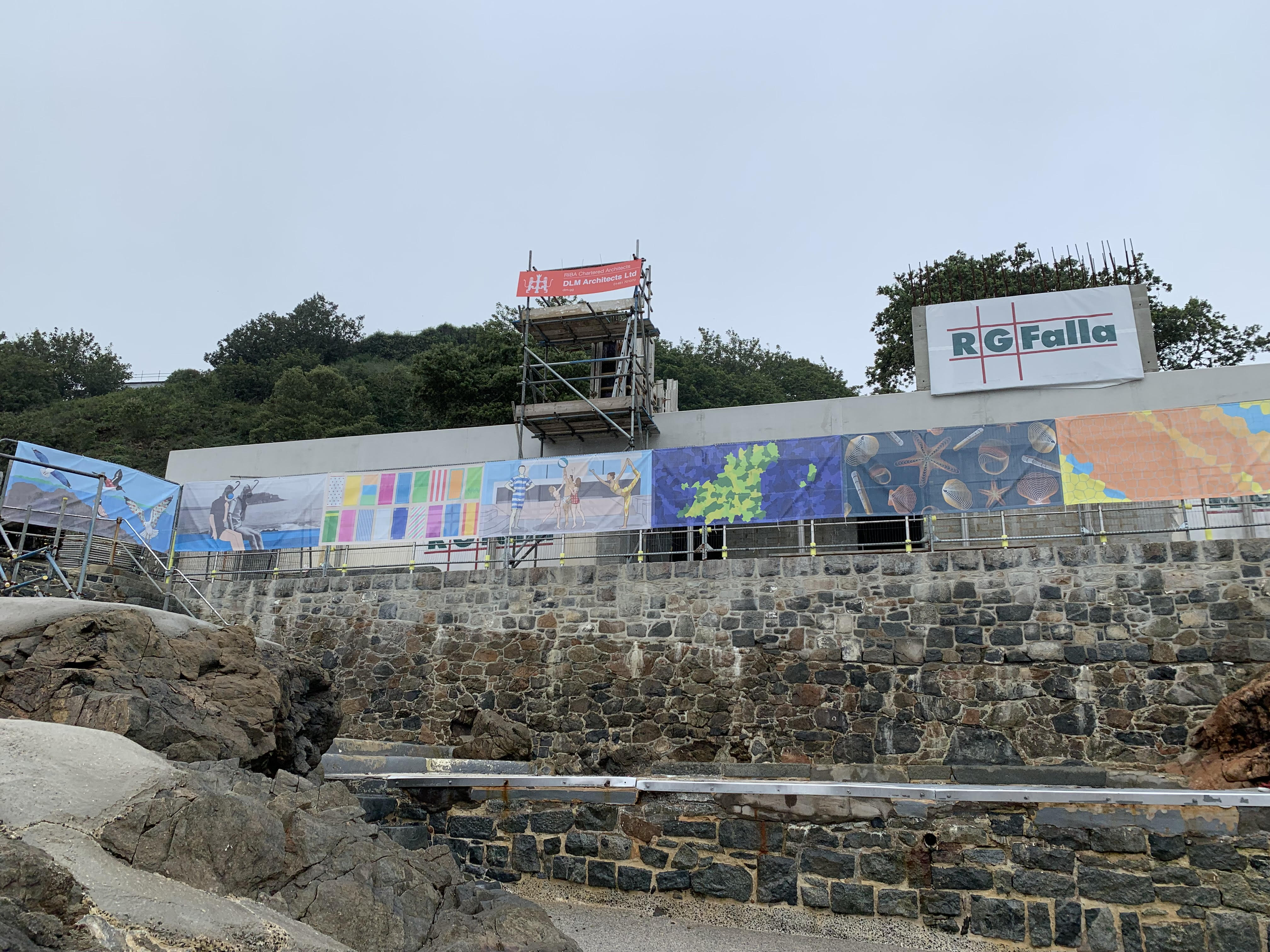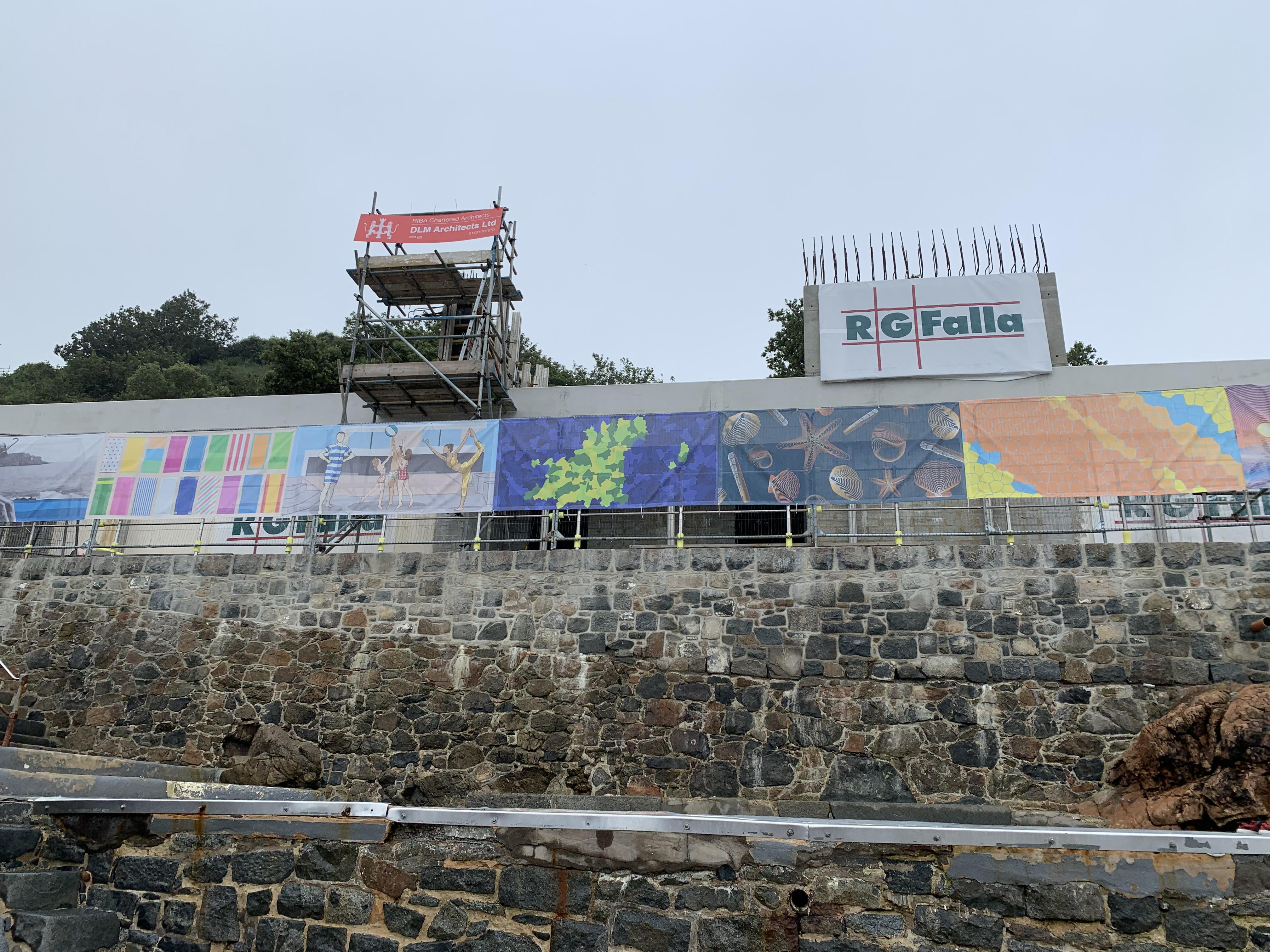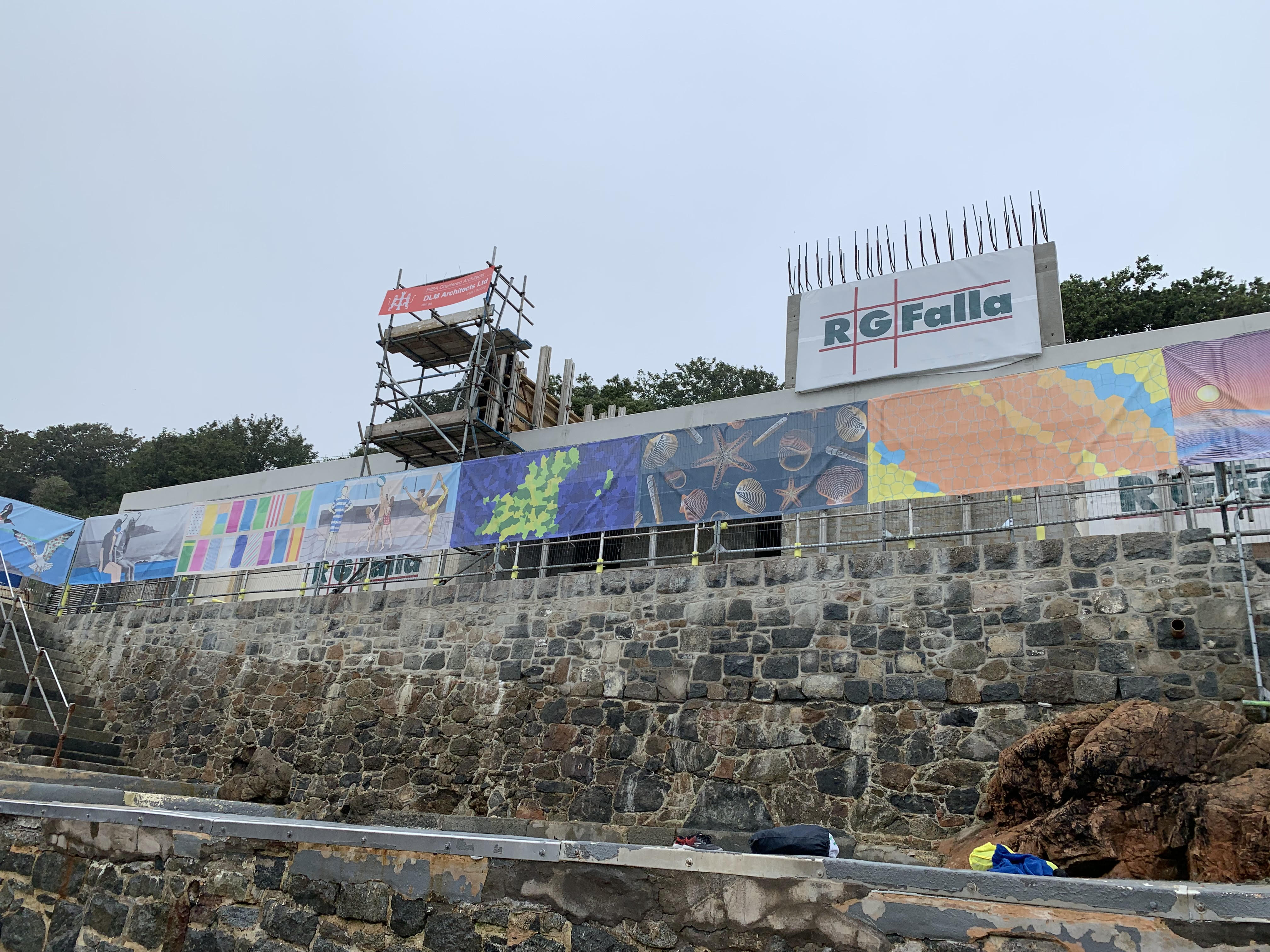 I designed two of many promotional banners to be displayed along the outside rigging of the Guernsey bathing pools as part of a revitalisation project in 2021. The first two images showcase my designs, focusing on a more mosaic motif while the later images show the banners alongside all the others designed. The final image showcases an early prototype of the first banner